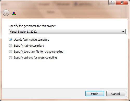 Now select your version of Visual Studio, since some C++11 features are used you need VS2012 at least.